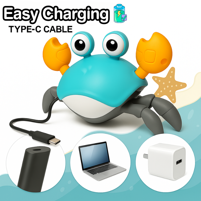 Yes, the Crawly Crab™ is a rechargeable toy and comes with a FREE USB Type-C fast charging cable.